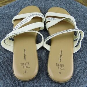 Time And Tru Women Slide Sandal Shoes White Synthetic Size 8 Medium