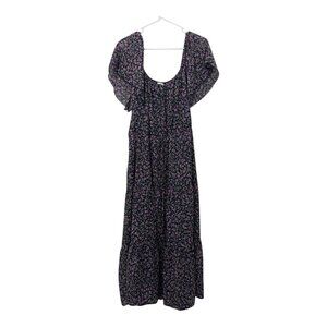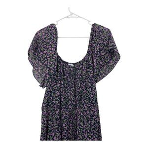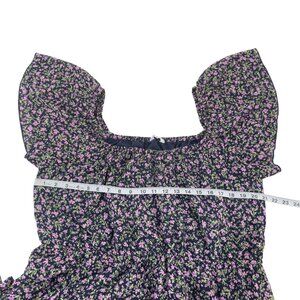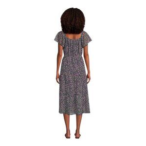 Time And Tru Women XL Floral Midi Dress Flutter Sleeves Navy Purple Lightweight