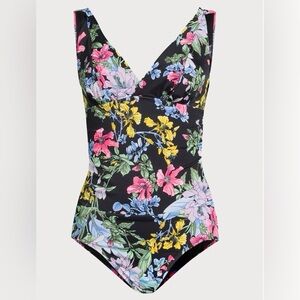 Time And Tru Womens Black Floral Plunge V-Neck One-Piece Swimsuit Size Small 4-6. New with tags and hygiene liner. From smoke free home.