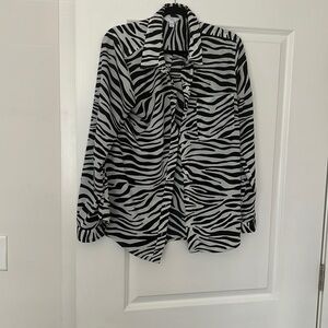 Time And Tru Womens Blouse Black White Zebra Print Long Sleeve Pocket