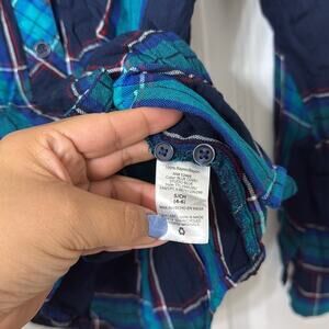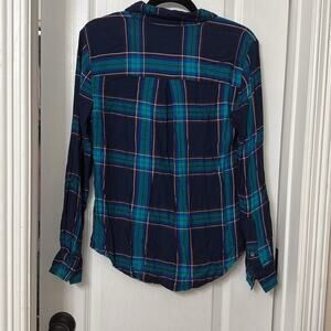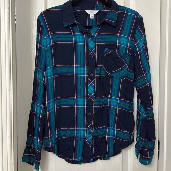 Time And Tru Womens Blue Plaid Long Sleeve Collared Button Up Shirt Size S (4-6)