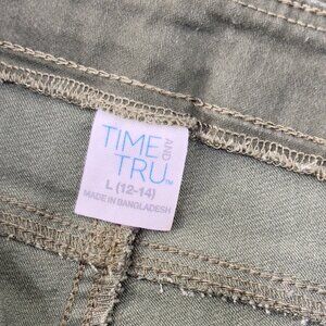 Time And Tru Womens HAND MADE CUT Green Midi Rise Shorts Size L Cotton Blend