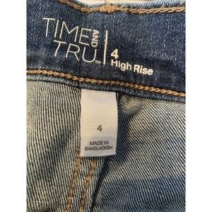 Time And Tru Women's High Rise Cargo Capri Denim Jeans Dark Blue Wash Size 4 Y2K