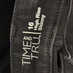 Time And Tru Womens High Rise Skinny Black Distressed Jeans Size 16