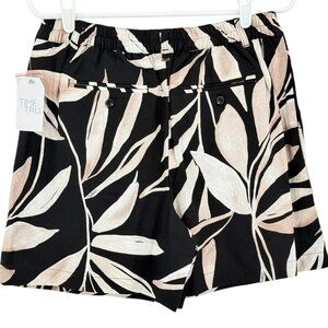Time And Tru Women's Linen Blend Tropical Black Shorts S (4-6) Elastic Back NWT