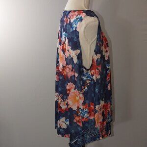 Time And Tru Womens Plus Size Sleeveless Floral Top XXL 20 Blue & Pink Polka Dot