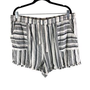 Time And Tru Womens Striped Linen Blend Shorts Black White XXL