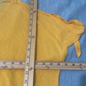 Time And Tru Womens V-Neck Yellow Tie-Sleeve Top L (12-14) Rayon/Polyester