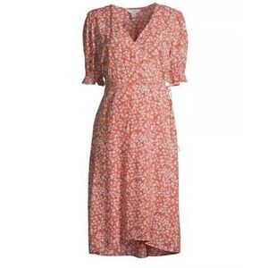 Time And Tru Womens Woven Wrap Dress, Orange Saffron Floral, XXL (20)