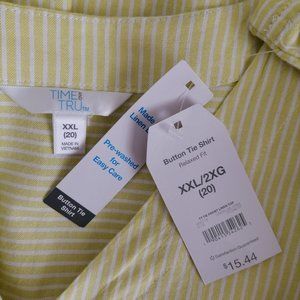 Time And Tru Women's Yellow Striped Tie Front Top Size XXL New With Tag