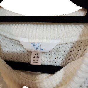 • Time And Tru XS Waffle Knit Sweater Womens Recycled Fibers Cream Long Sleeve Pullover NWT