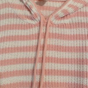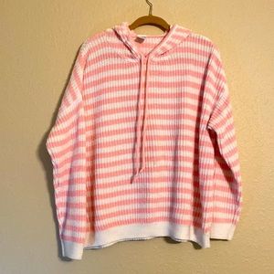 ✨Time And Tru•Knitted Hoodie•Pink & White Striped•Large(12-14)✨