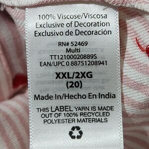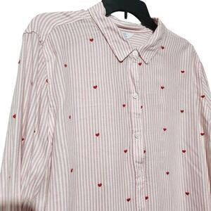 Time And tru Shirt For Women Size XXL Pink Striped Embroidered Hearts