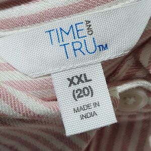 Time And tru Shirt Size XXL Pink Striped Embroidered Hearts