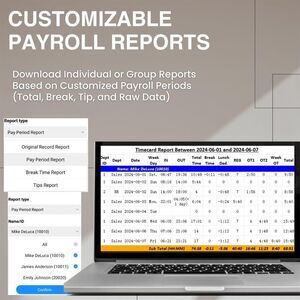 Attendance Report Management: Set start and end dates for reports in the app, and choose to generate printable attendance reports for all employees or specific individuals. You can export work hours, break times, tips, and raw data reports, and share them easily via email or other applications.