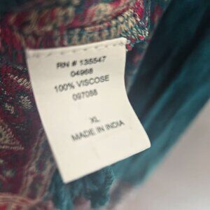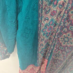 Time For Me Turquoise Brocade Kimono Boho Cardigan Fringe Size XL