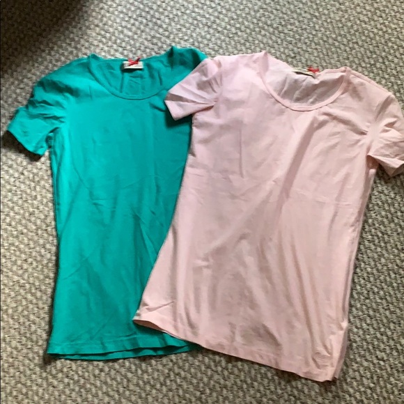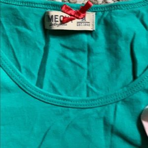 Size medium and small but medium fits like the small. Like a teal and light pink color