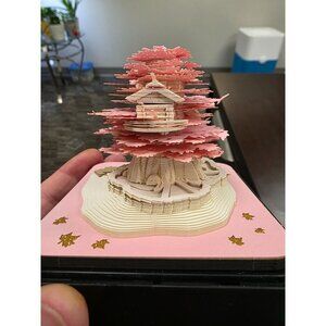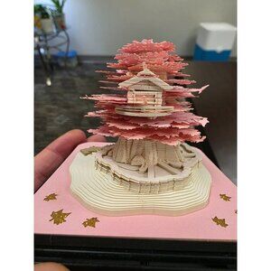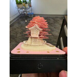 Time Piece Calendar with LED Light 2024, Creative DIY Paper Carving Art Craft, 3D Art Desk Calendar Sakura Tree Tear Away, Art Sticky Notes Memo Pad for School Home Office (Cherry Tree)
