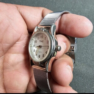 Time Quartz Ladies Fashion Watch White Dial Silver Tone Working Mesh Straps show See pictures for reference and measurements