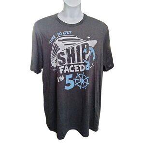 Time To Get Ship Faced 50th Birthday Cruise Gray Graphic Tee T-Shirt 2XL