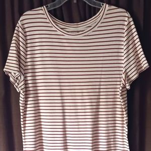 scoop neck shirt color is rust and white