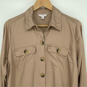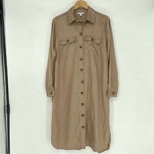 Time & Tru Beige Shirt Dress - Button Front - LS - Collar - Pockets with flaps and buttons on the front and hidden side pockets on the waist/hips