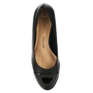 Time & Tru Black Memory Foam Wedge Heels Faux Leather Glossy Toe Cap Size 11