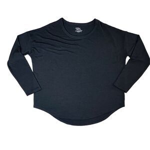 Time & Tru Black & Navy Lightweight Sweater-like Fabric LS Shirts(2) sz LARGE Casual Normcore. Super cozy and soft to the touch lightweight Knit. 48% Rayon 48% Polyester 4% Spandex. Machine washable. Item in excellent New no tags condition. No known rips, tears, holes, stains or defects.