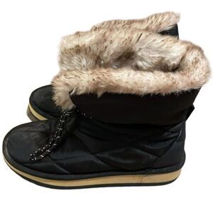 Time & Tru Black Thinsulate Faux Fur Quilted Boots Womens Size 7 Winter