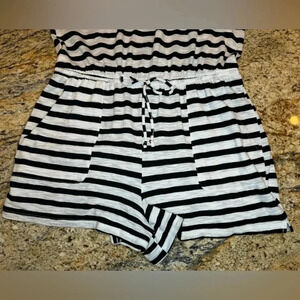 Time & Tru Black/White Stripe Shortall Romper Women's Size Large (12-14)