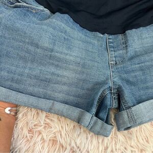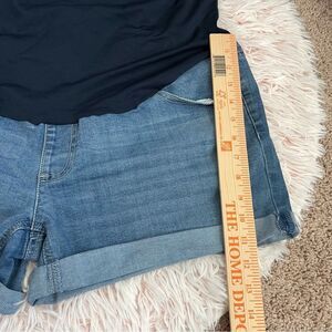 Time & Tru Blue Jean Roll Cuffed Maternity Stretch Denim Shorts Sz L 12/14