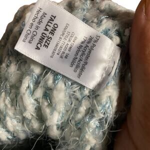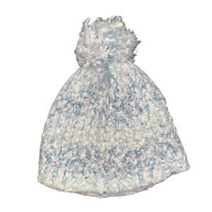 Time & Tru Blue White Metallic Pom-Pom Beanie Snow Winter Hat Cap Women's