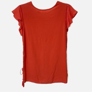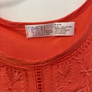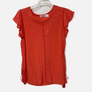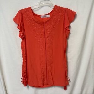 Time & Tru Bright Coral Top with Embroidery & Tassels Size Small