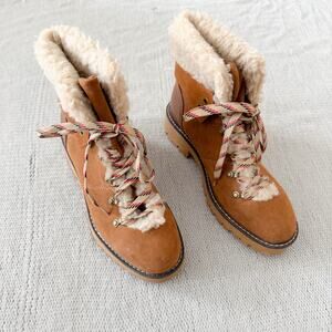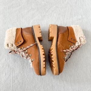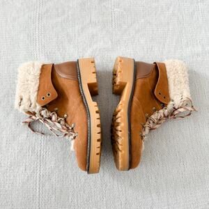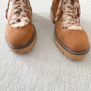 Time & Tru Brown Sherpa Lined Lace Up Heeled Ankle Boots - Size 10