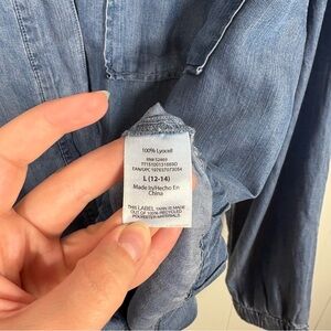Time & Tru Chambray Denim Lightweight Button Down Toggle Tie Shirt Large L 12 14