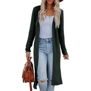 Time & Tru Dark Green Ribbed Duster Cardigan