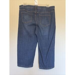 Time & Tru Dark Wash 5-Pocket Pull On Elastic Waist Cropped Denim Jeans XL 16-18