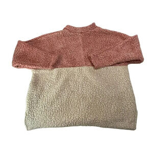 Time & Tru Fleece Quarter Zip Sweatshirt w/ Pockets Pink & White, 2X 20W-22W