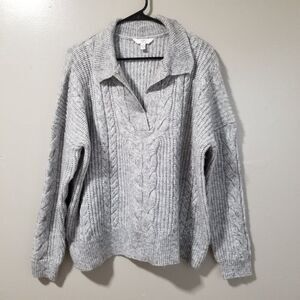 Time & Tru Gray Cable Knit Sweater Women's L (12-14)