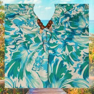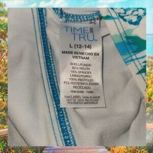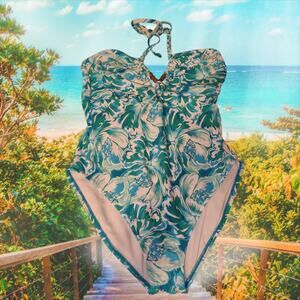 Time & Tru Green & Blue Floral Halter One-Piece Swimsuit