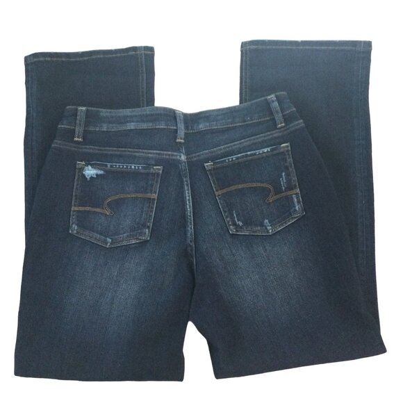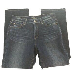 Time & Tru High Rise Boot Pants Sz 14P Womens Blue Denim Jeans Tapered Y2K Collaboration Distressed Darkwash