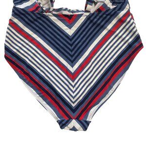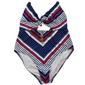 Time Tru L One Piece Swim Suit Red White Blue Patriotic Sailor Cutout Peep Vneck