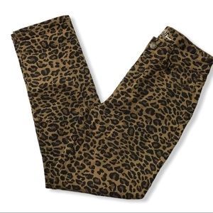 Leopard print, high rise fit, straight leg, cropped fit, zip and button fly.