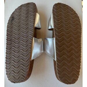 Time & Tru Metallic Silver Sandals w/Tan Cork Bottom Women's Size 9 (READ)