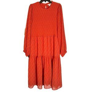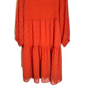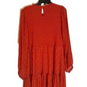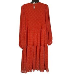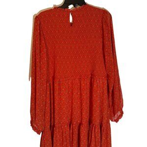Time & Tru Orange Multi Patterned Long Sleeve Dress XXL Midi Dress. NWOT