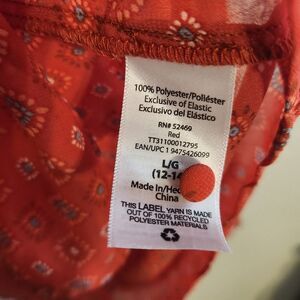 Time & Tru Orange Floral Pleated Sheer Peasant Top Large