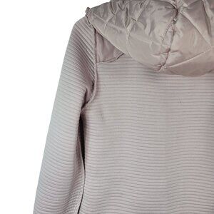 Time & Tru Quilted Jacket Pink Small Long Sleeve Hood Pockets Ribbed Zip Ottoman