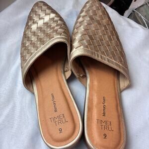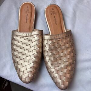 Time & Tru Slip On Gold Weave Mules Women's 9 Holiday Party Christmas Slip On