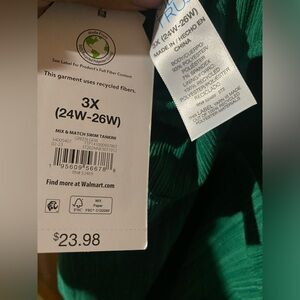 Time & Tru Swimsuit Top Green Bathing Suit Size 3X (24W-26W) Adjustable Straps NWT