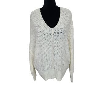 Time And Tru Women's Cream Pullover V Neck Long Sleeve Open Knit Sweater